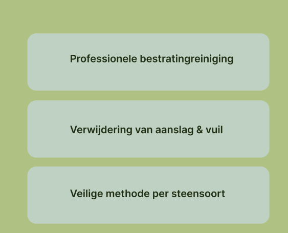 We bekijken eerst ter plaatse welke reinigingsmethode het meest geschikt is, afgestemd op de soort bestrating. Of het nu gaat om hogedrukreiniging, het verwijderen van algen of het opfrissen van terrastegels: wij zorgen voor een grondige, veilige reiniging zonder schade. Zo ligt jouw terrein er altijd verzorgd bij.